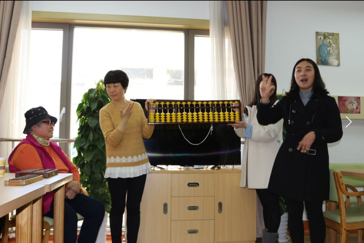 2018年3月9日,基地负责人王玮携手商会校财信党支部书记龚如颜、教学经验丰富的顾非非等一同前往半淞园路街道长者照顾之家开展志愿服务。同去的三位学生背着吉他自弹自唱,以两首美妙的歌曲暖场后,正式进入主题——体验珠算民族文化。王玮老师展示了各式各样的算盘:有传统的中国算盘、简约的日式算盘、民俗意味满满的笔筒算盘,还有镇纸算盘、饰品算盘等等,老人们大饱眼福。顾非非老师简单介绍了珠算基本指法与加法口诀,并在大算盘上演示一加到十,好几位老人年轻时都学过用过算盘,堪称高手,口诀背得比老师还流利:一下五去四,四去六进一……。龚如彦老师也和老人们一起“玩算盘”,大家仿佛都回到了小时候,场面其乐融融。顾莹莹老师带着老人们一起练习算盘手指操,希望他们平时不打算盘也可以活动手指,健脑益身。老人非常开心,希望志愿者能“常回去看看”。