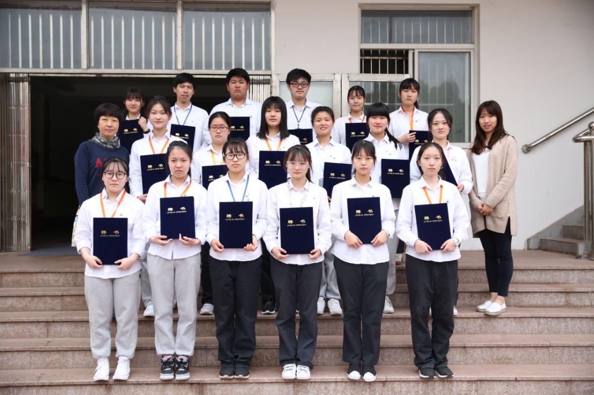在积极开展各项活动、加强珠算数字化资源建设的同时,基地还加强团队建设。2018年4月2日,在商会校财会教学部的升旗仪式上,清荷珠算文化学生志愿交流团(SAT)举行了授牌与发放聘书仪式。这是SAT团队的第一次亮相,无论是站位、服装、举聘书的姿势……大家都努力做到一丝不苟。当捧着散发着“光芒”的聘书和徽章时,团员们既能感受到责任的重大,心中又十分的骄傲,都在心中默许:一定要把“弘扬珠算文化”这棵种子播撒到每位同学心中,让越来越多的人认识到珠算,爱上珠算。目前,已有18位同学成为交流团的首批成员。他们已经在教博会珠算展区中积极发挥作用,还将在会计信息化研讨会、职业体验日等更多的活动中担任宣传与体验的志愿者。